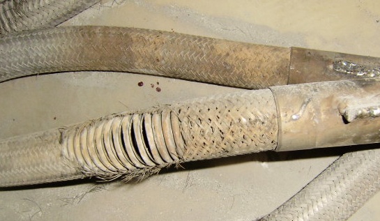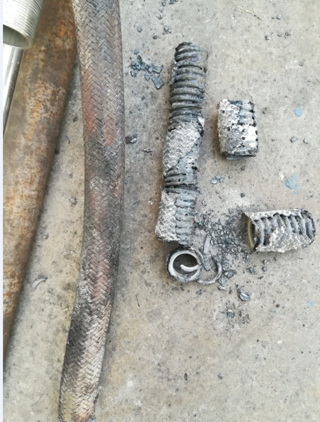 3、磨损的火检外导管金属软管,无法对光纤起到有效的保护作用,导致光纤频繁的更换,大大增加了维护成本和维护工作量,同时也对锅炉的安全运行带来风险。